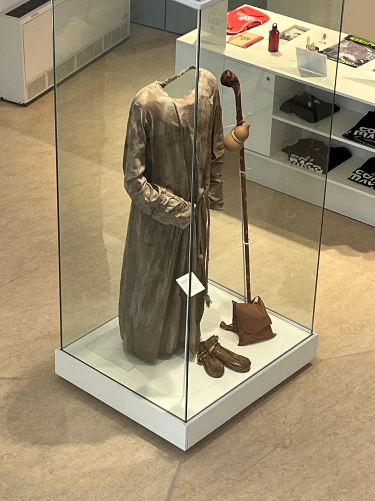 Ayer llegamos tarde a la cena. Habíamos pasado a recoger nuestros Certificados de Peregrinos en el Museu del Barroc y se nos hizo tarde. Llegamos cuando el resto de compañeros ya estaban con el postre. Todavía quedaba comida, así que pudimos cenar algo. El estilo es austero y sobrio, y la comida también, incluyendo las raciones. Pero siempre hay un vasito para el vino tinto, que por cierto está muy bueno.